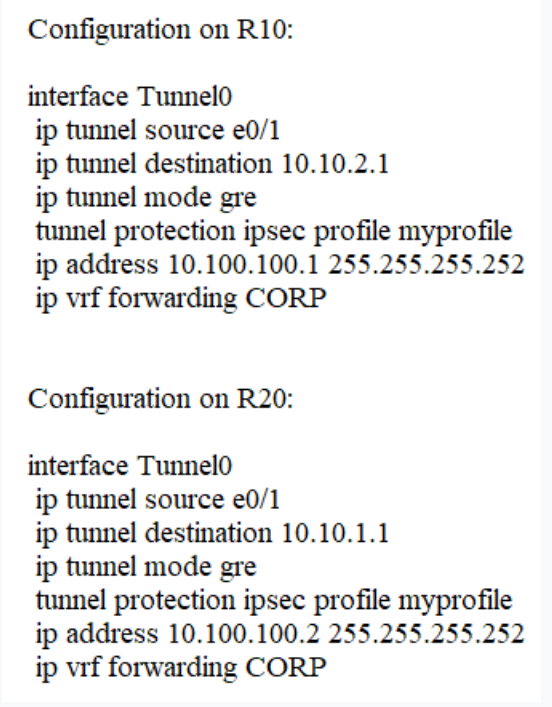 - Tunnel0を使用してR10とR20間でCORP VRFを拡張する