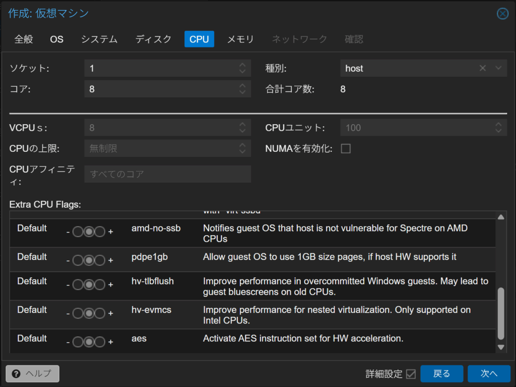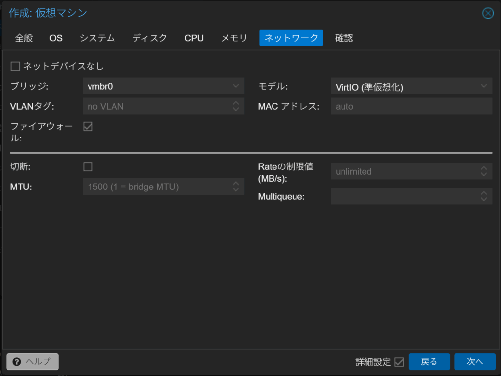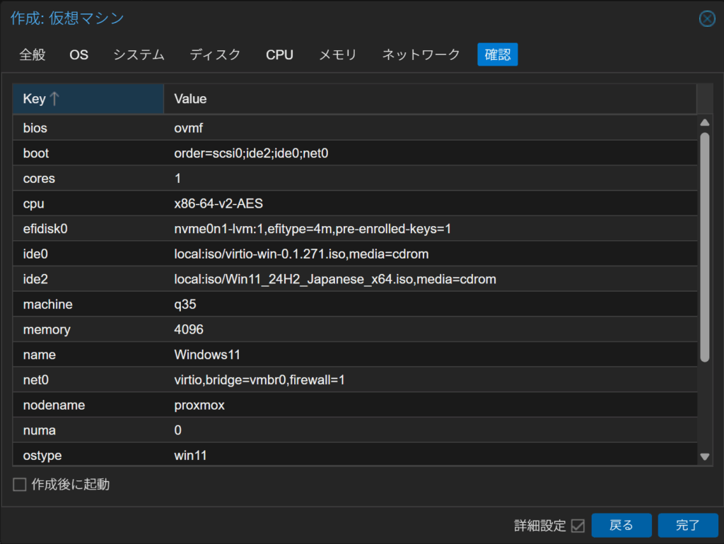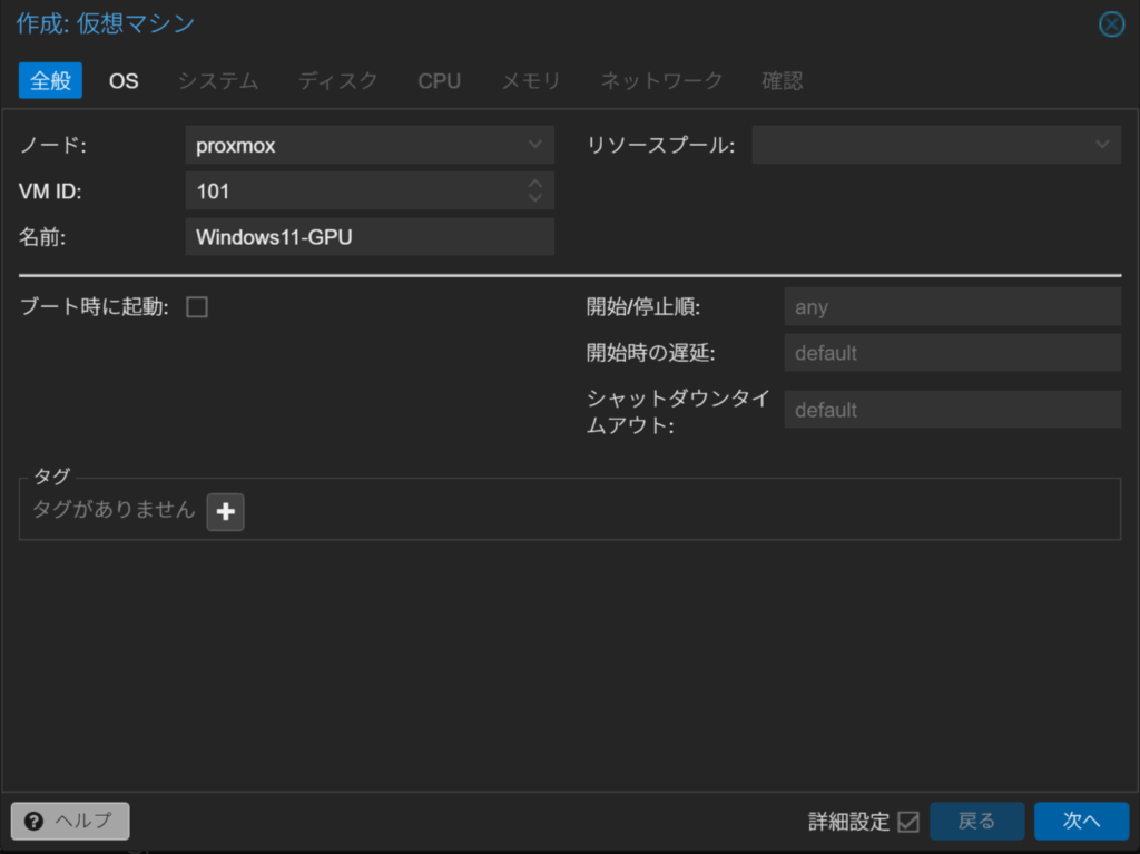 ③VertIO ドライバ用の追加ドライブを追加に☑チェックを入れ[ISOイメージ:]に[virto-win-0.1.271.iso]を指定する。